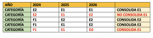 Se da en aquellos casos que en 2025 subió más de una categoría y que en 2026 disminuye de categoría, siendo la categoría resultante superior a la del 2024: se consolida la categoría del 2026.